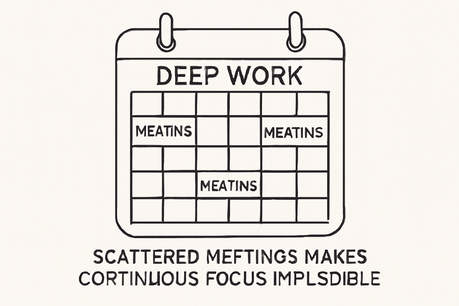 Meeting culture disrupts concentration blocks essential for deep work, impacting creativity and productivity.